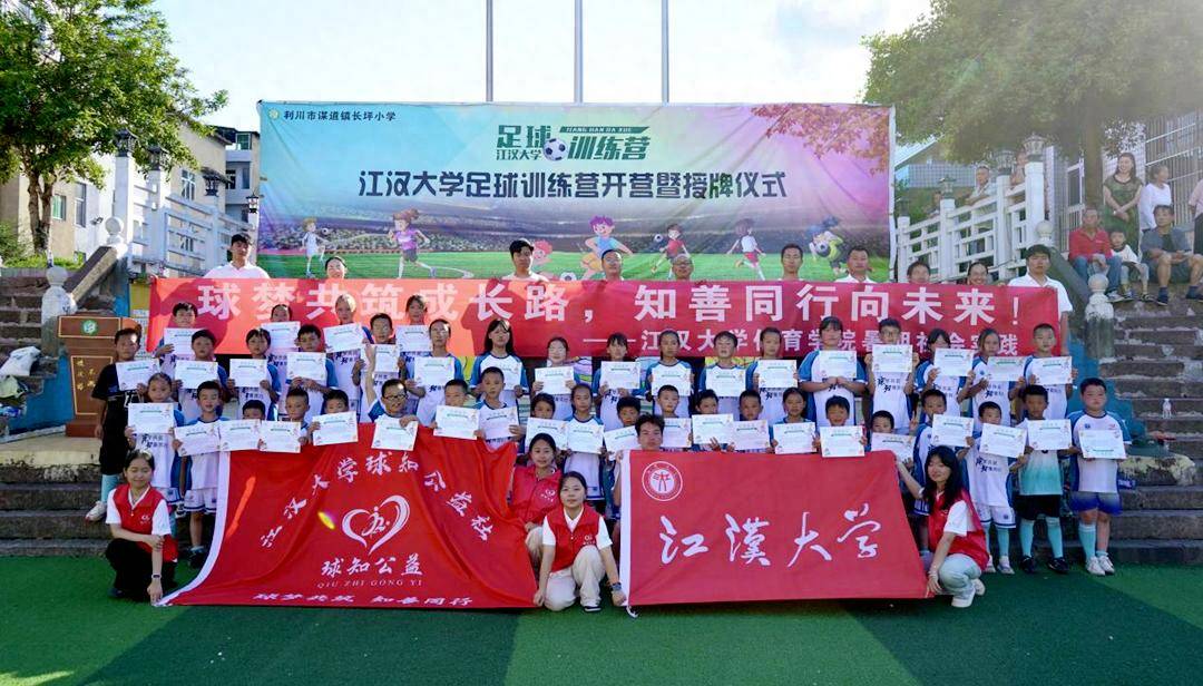 8月15—17日,江汉大学携手湖北省恩施市利川长坪小学开展的2025年青年红色筑梦之旅足球夏令营活动圆满落幕。此次活动由江汉大学球知公益社联合体育学院等多方力量携手武汉市硚口区关工委、利川市关工委及教育局共同举办,为期3天的夏令营里,开营授牌、技能训练、精神互动等丰富环节接连上演,让长坪小学的孩子们在绿茵场上感受足球魅力,在互动中传承红色精神与女足力量。